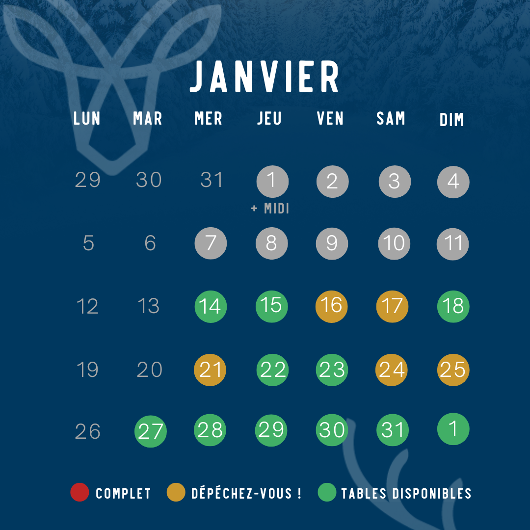 Prochaines dates : 11/01, 18/01, 25/01, 01/02, 08/02 et 15/02.