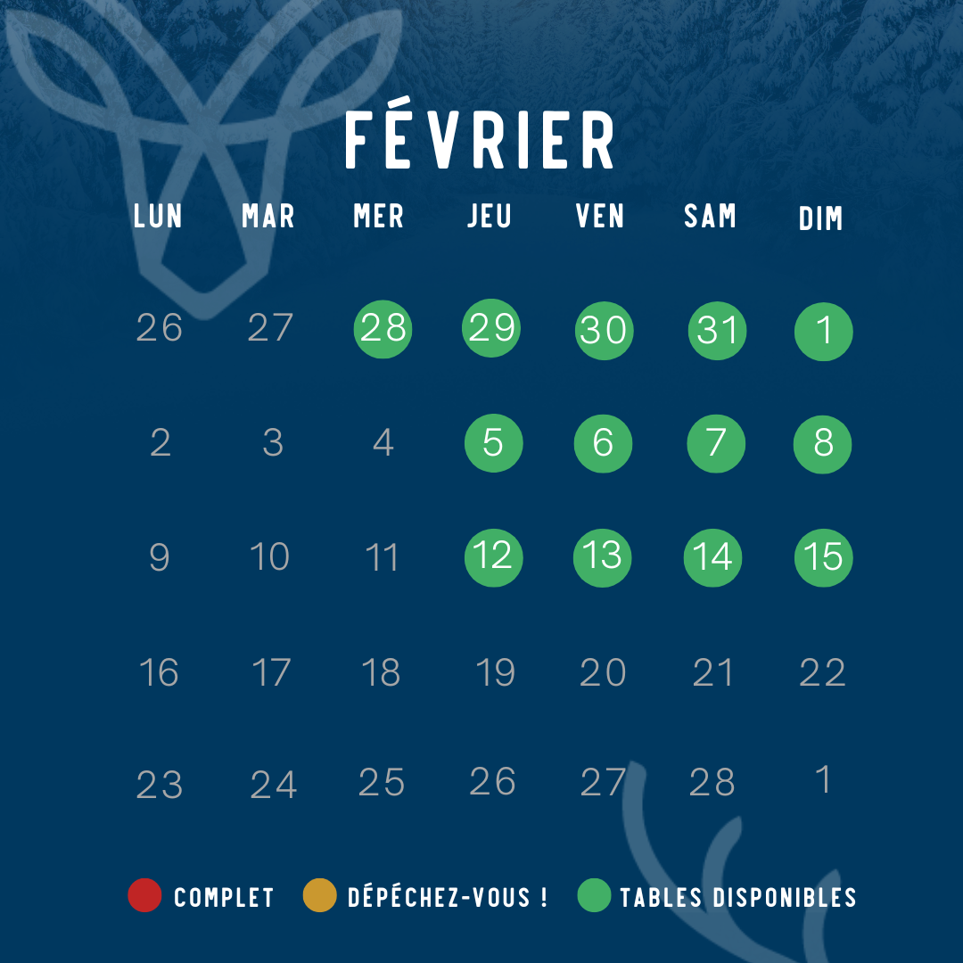 - Samedi 14/02 – Menu de la Saint-Valentin également disponible