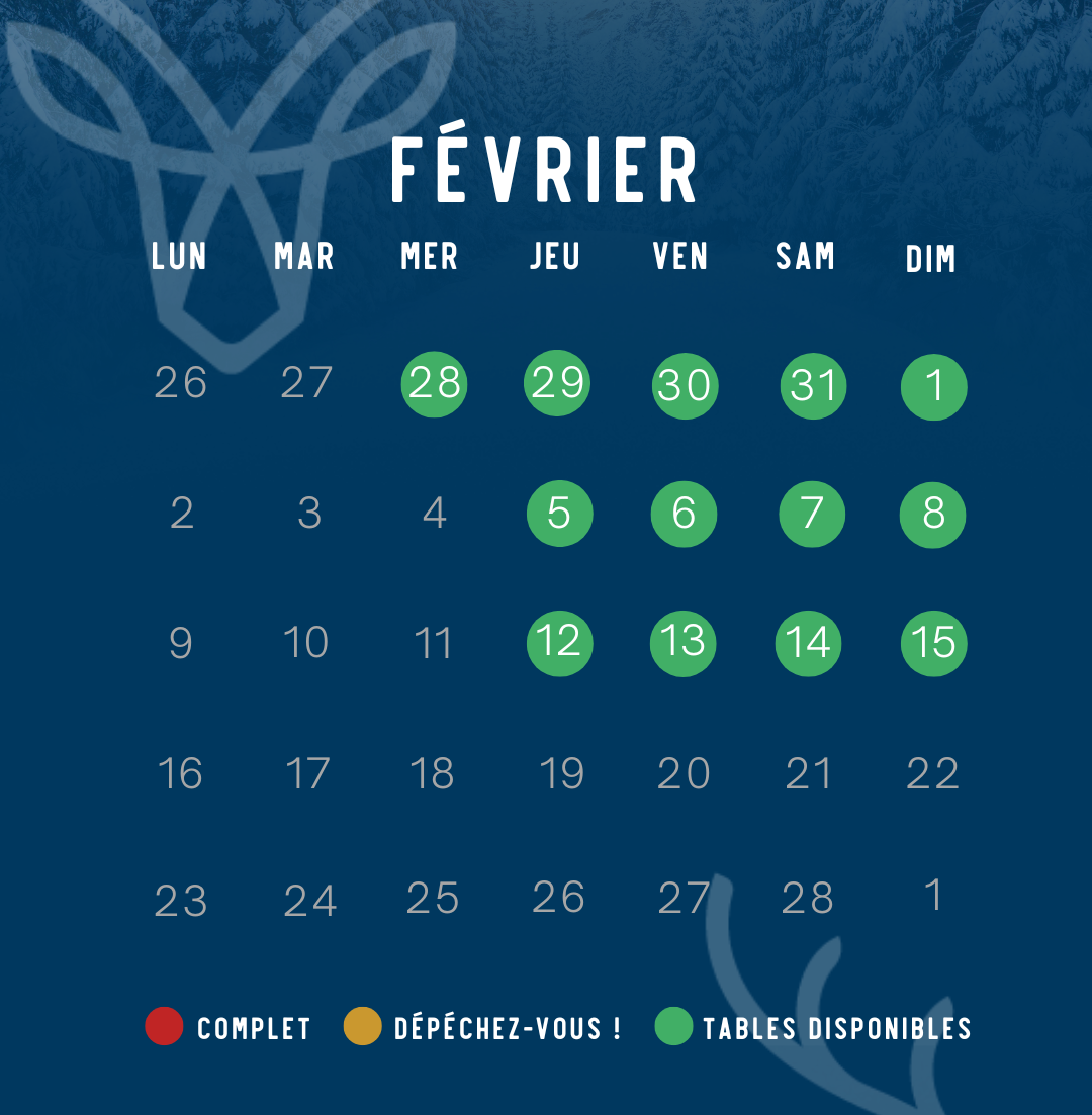 - Samedi 14/02 – Menu de la Saint-Valentin également disponible